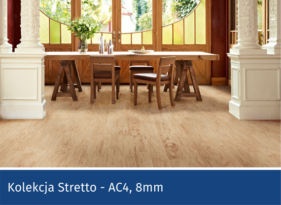Panele podłogowe z kolekcji Stretto charakteryzują się smukłą i elegancką sylwetką deski o szerokości zaledwie 134 mm, które nadadzą pomieszczeniu stylu oraz uczucia swobody.