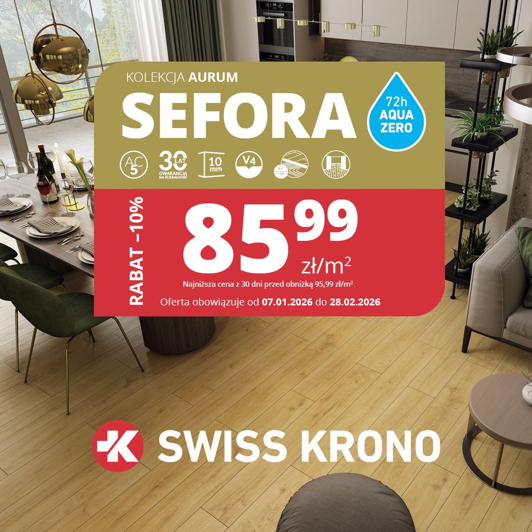 Kolekcja SEFORA Aqua ZERO 72h nawiązuje do świata zapachów. Osiem dekorów nosi nazwy rodzajów kawy, która była inspiracją przy tworzeniu nowych kolorów. Struktura synchroniczna paneli idealnie interpretuje piękno drewna, a dzięki wysokiej klasie ścieralności podłogi SWISS KRONO zachowują estetykę na lata. Wodoodporne panele tworzą wnętrza, w których można się zrelaksować i cieszyć smakiem życia.na układanie na dużych powierzchniach.