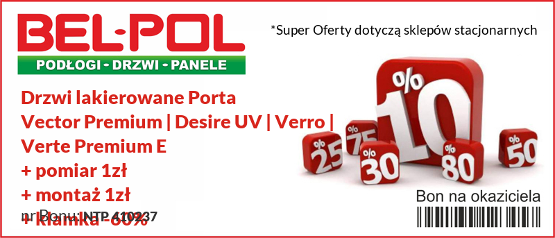 Super oferta na drzwi Porta + pomiar 1zł + montaż 1zł + klamka -60%. Szczegóły w regulaminie.