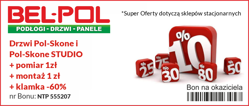 Oferta dotyczy własnych sklepów stacjonarnych BEL-POL Sp. z o.o. Oferta skierowana jest do osób fizycznych, nie firm. Szczegóły oferty w regulaminie oraz u doradców w sklepie. Zdjęcia przedstawiają przykładowe aranżacje drzwi. Dnia 01.08.2025 r. super oferta została rozszerzona o kolekcje Pol-Skone Cambio.