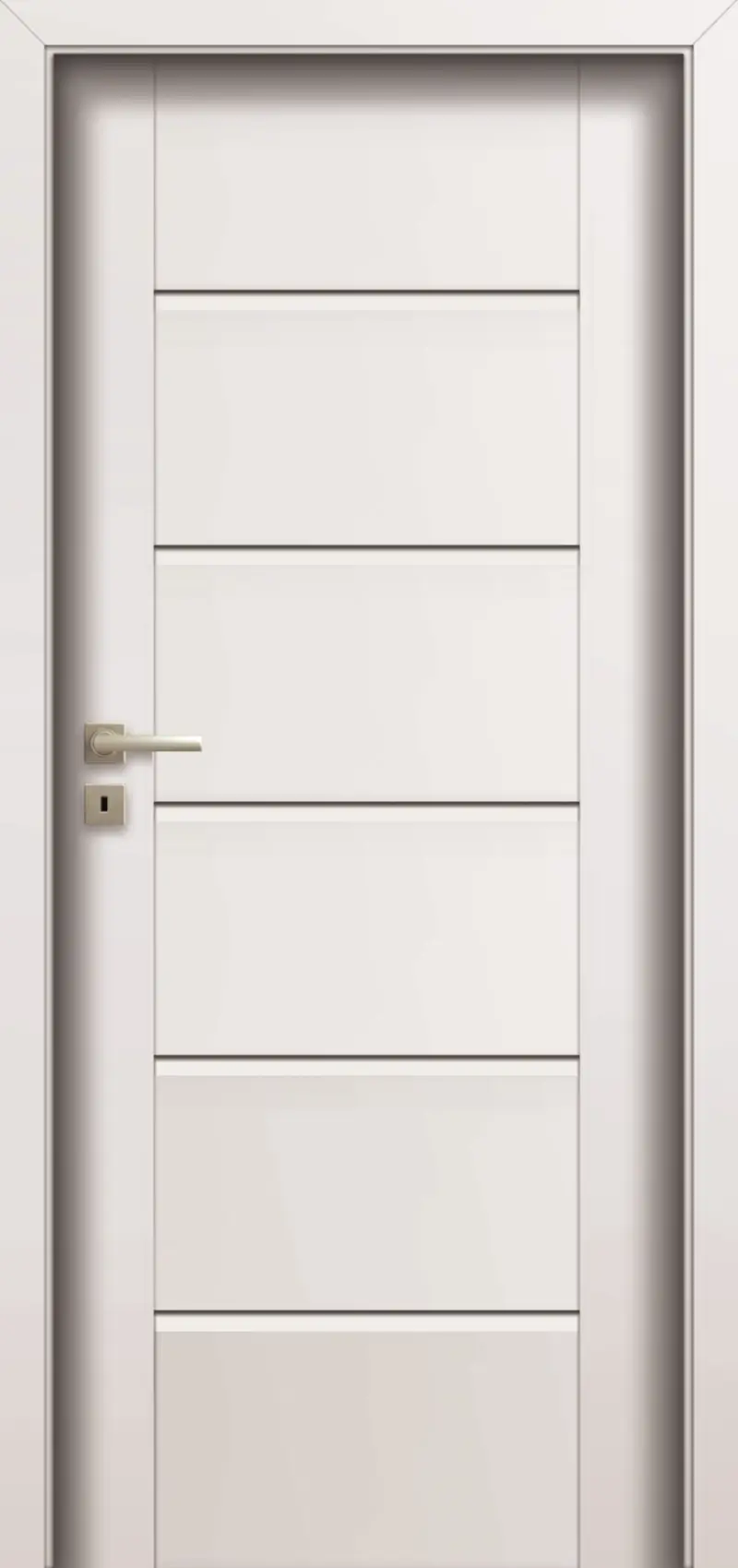 Drzwi zbudowane są na bazie ramiaka drewnianego obłożonego dwiema gładkimi płytami HDF pokrytymi powierzchnią malowaną ekologicznymi farbami akrylowymi w kolorze białym RAL 5011, 6012, 7047, 9003, 9005, 9010, 9016 oraz NCS s2005 Y50R. Wypełnienie stanowi płyta wiórowa pełna. Dostępne w systemie przylgowym, bezprzylgowym oraz REVES.
