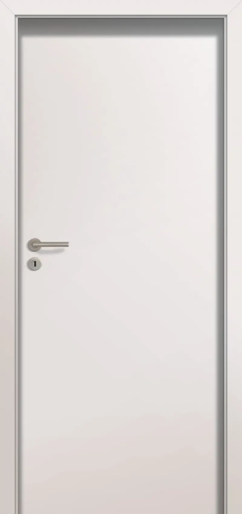 Drzwi zbudowane są z ramiaka drewnianego obłożonego dwiema gładkimi płytami HDF o powierzchni LAMISTONE CPL oraz UNI MAT PLUS. Standardowe wypełnienie stanowi płyta wiórowa pełna. Dostępne w systemie przylgowym, bezprzylgowym lub REVES.