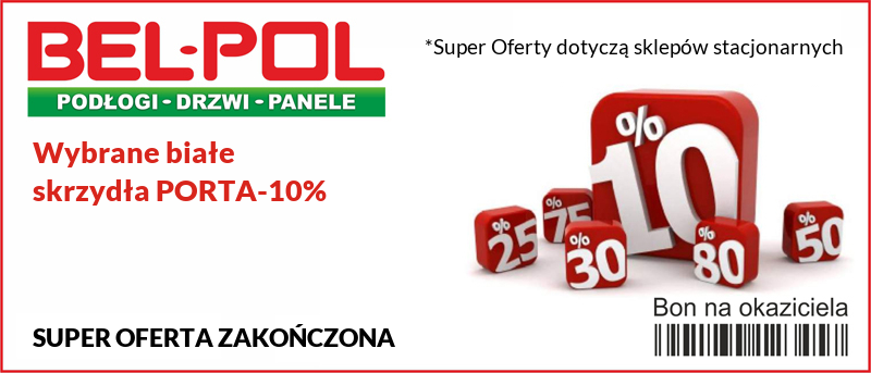Z wielką przyjemnością prezentujemy państwu białe drzwi wewnętrzne firmy PORTA, dostępne w BEL-POL w SUPER OBNIŻONYCH CENACH -10% charakteryzujące się nowoczesną, prostą formą skrzydła, która stanowi estetyczne uzupełnienie współczesnych kompozycji.
