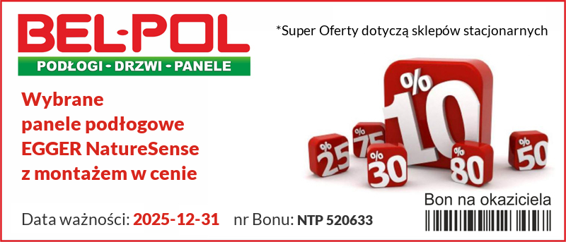 •    *Szczegóły w regulaminie promocji łączonej ,,Wybrane panele podłogowe Egger z montażem w cenie"