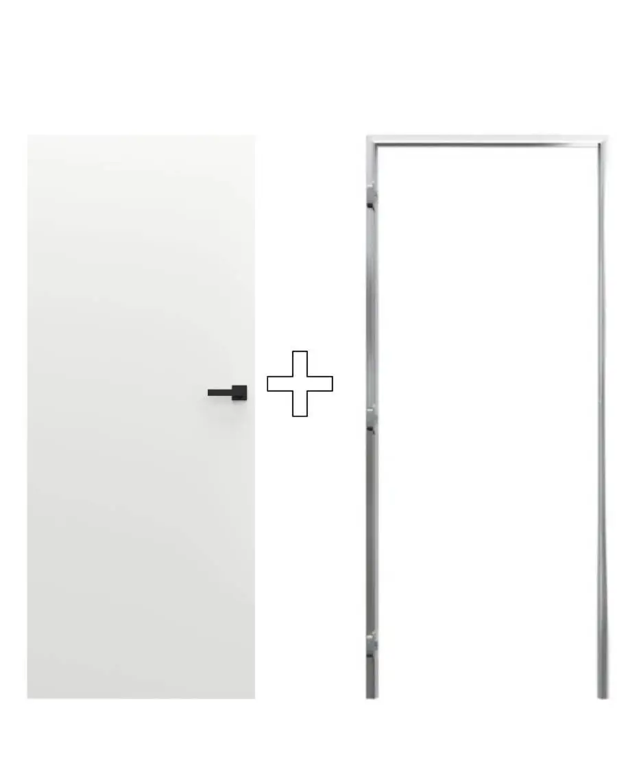 Zestaw Drzwi ukryte + Ościeżnica biała Sara Eco 2 bezprzylgowe (otwierane na zewnątrz) Lewe 80 cm płyta