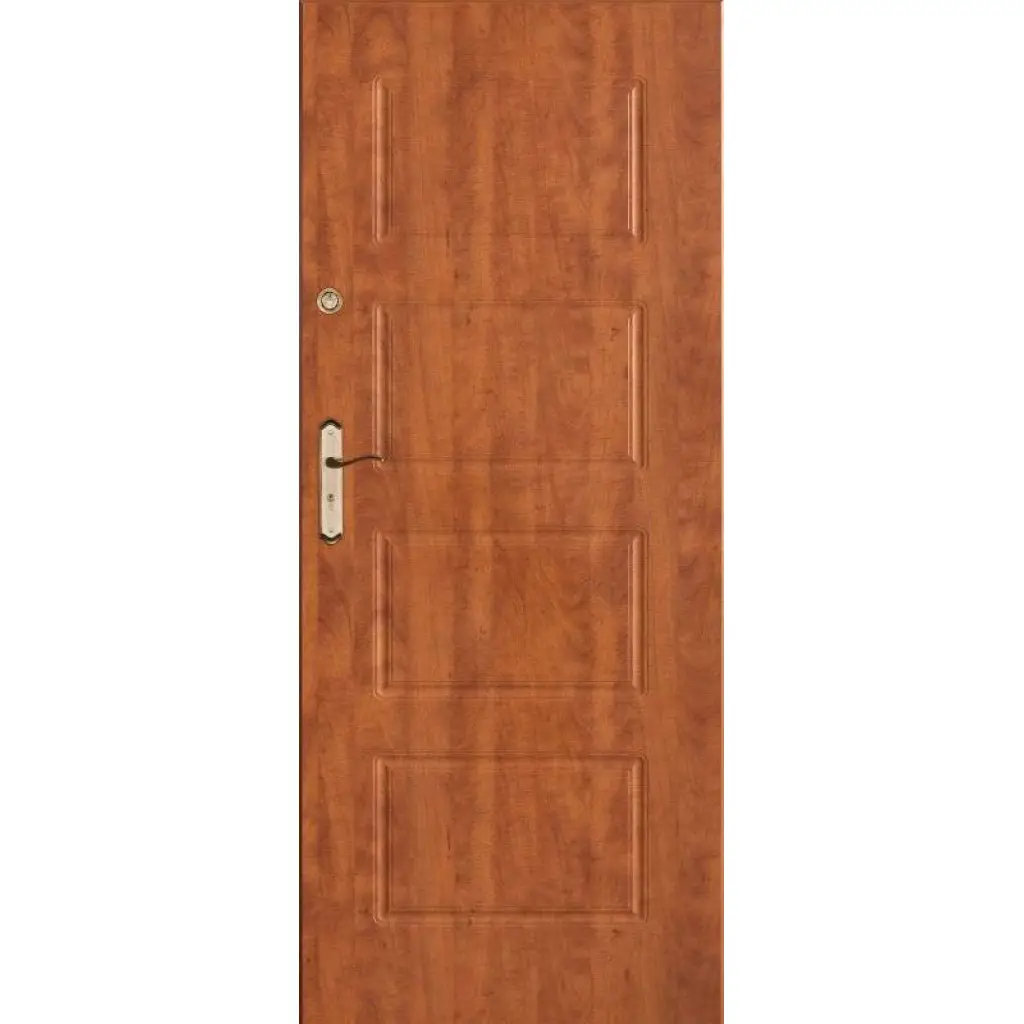 Rama skrzydła wykonana z płyty MDF dodatkowo wzmocniona dwoma płaskownikami stalowymi. Wypełnienie - płyta wiórowa otworowa. Skrzydło ma podwyższoną izolacyjność akustyczną (Rw=27dB) z ościeżnicą prostą ENTER i progiem stalowym. Płyta zewnętrzna HDF uszlachetniona okleiną DRE-Cell Decor. Wykończenie płaskie bądź z frezem dekoracyjnym.